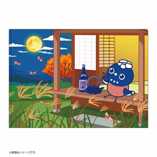 るりらんが月を見ながら黒千代香で焼酎を楽しむ様子がデザインされた「るりらん中秋の名月_黒千代香」クリアファイルが登場!